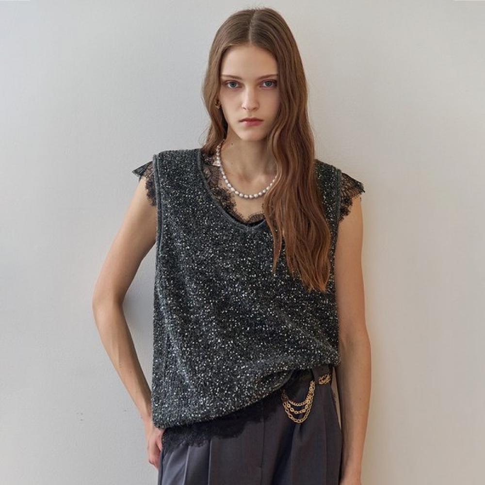 Pletená vesta Majah Sequin Mix s výstřihem do V ZE11QV001NA je pletená vesta s měkkou přízí se směsí flitrů, která poskytuje elegantní lesk..