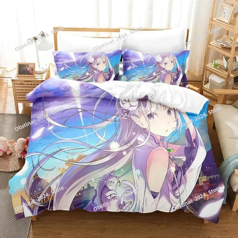 Anime ReZERO -Starting Life in Another World Bedding Set Printed Bed Set With Pillowcase Duvet Cover Soft Queen Super King Size