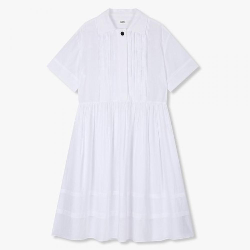 The Studio Tomboy Pintuck Shirt Type Dress (9105341120CT) features a clean upper in a shirt style and highlights a natural fit with pintuck and shirring details. It is ideal for casual daily looks.