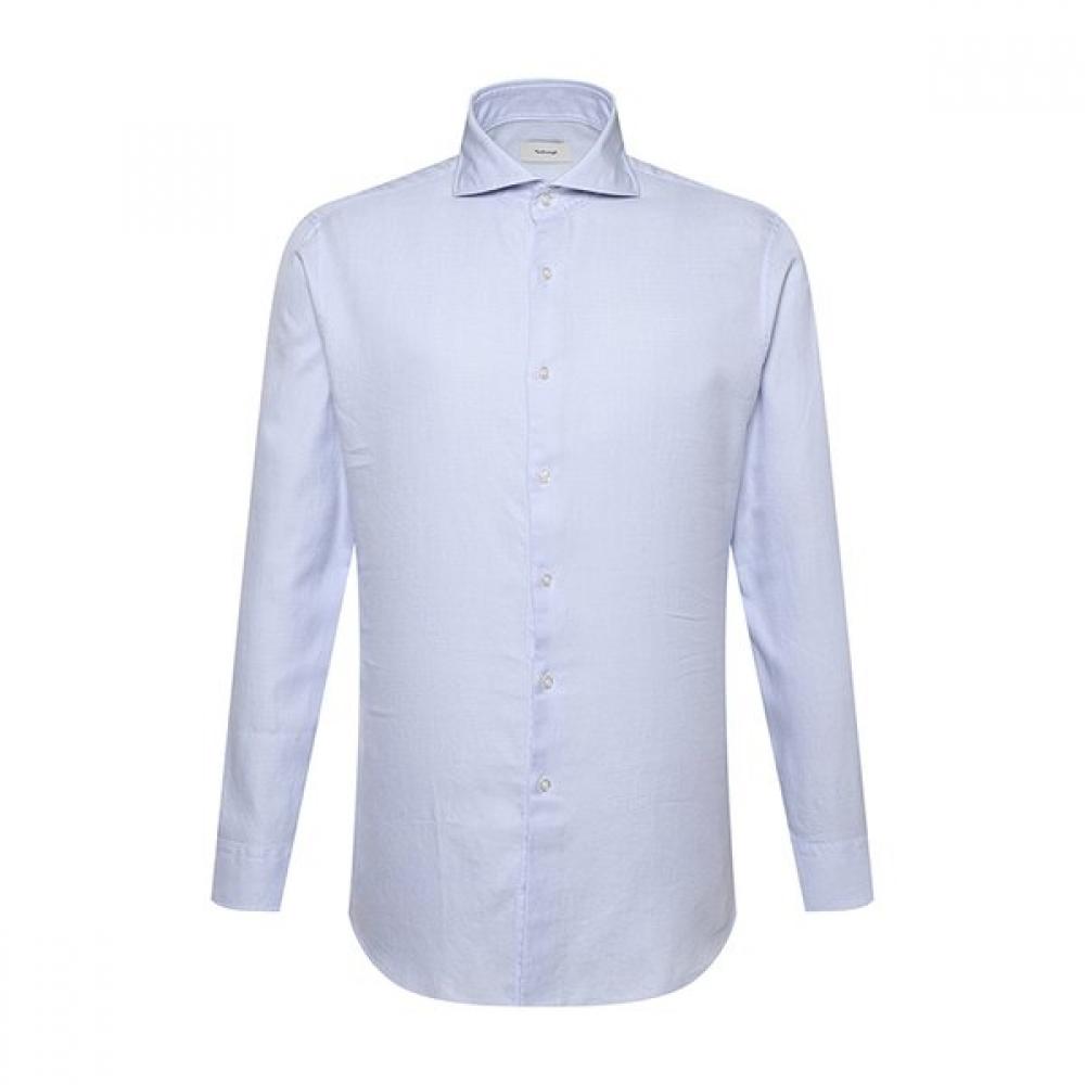 The Banbleu Grain Dobie Wide Collar Shirt (BNFL1130-BU) is a long-sleeve slim-fit shirt for men, featuring a luxurious solid design.