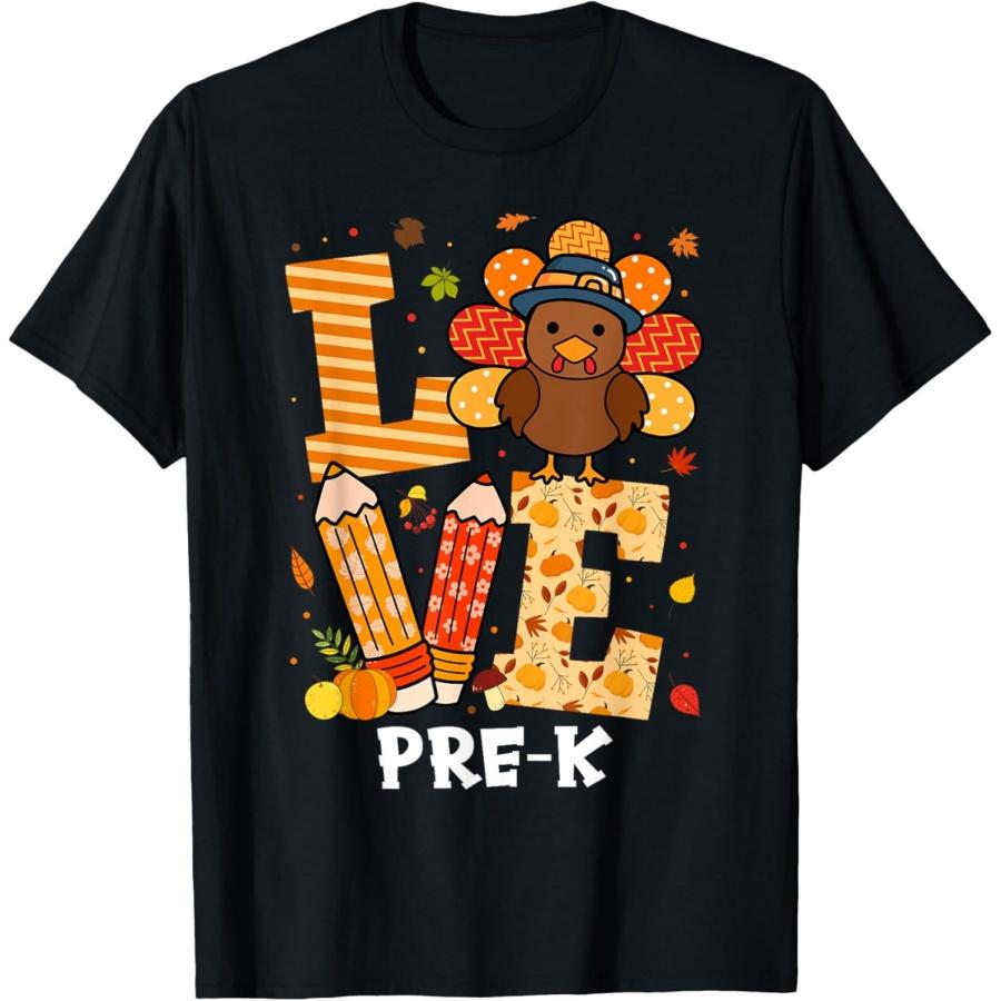 Thanksgiving Love Pre-K Teacher Turkey Autumn Fall T-Shirt for Men Women Girls Kids