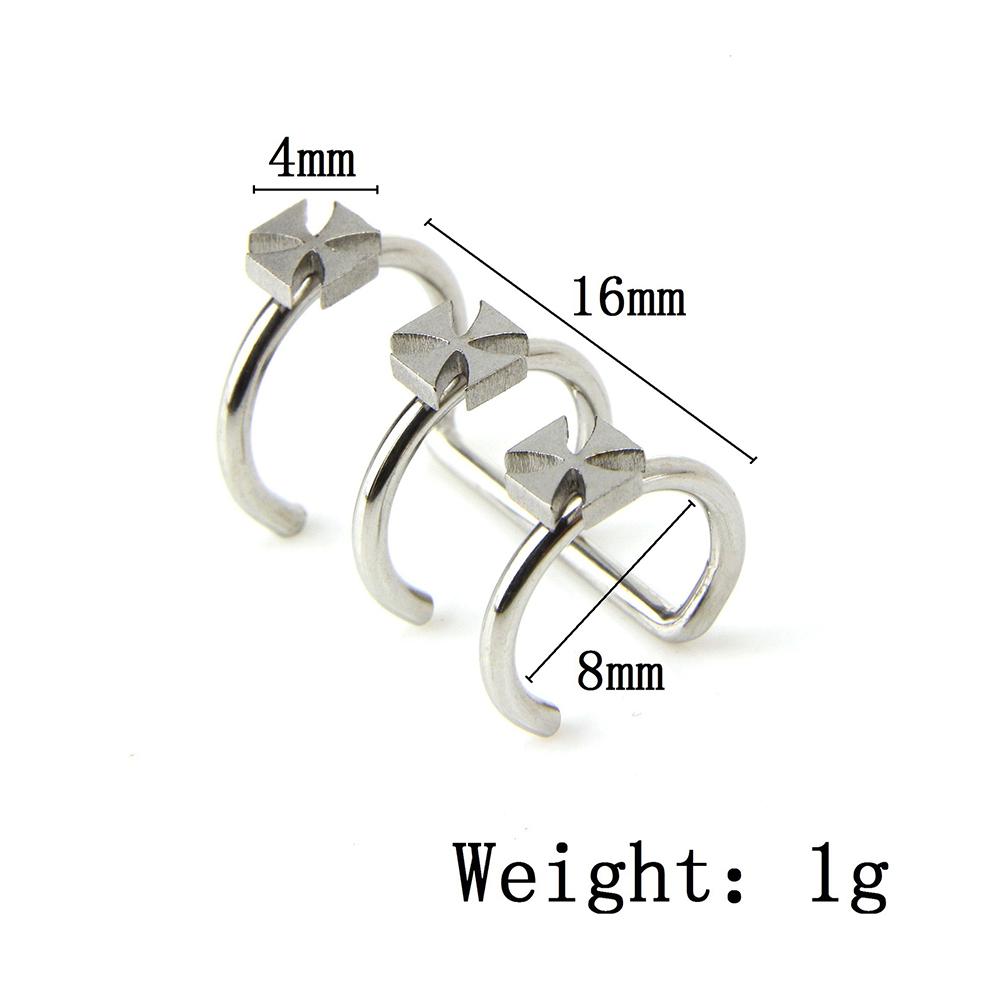 Unisex Earless Holes Stainless Steel Cross Design Cartilage Earrings Jewelry