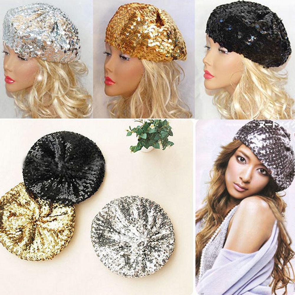 Women Fashion Shimmer Sequin Cap Chic Unique Beret Stage Performance Cap