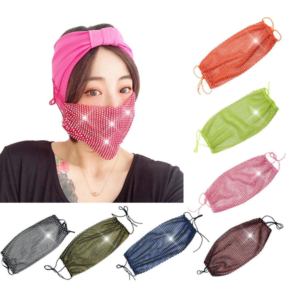 Women's Mesh Face Mask Flash Diamond Rhinestone Star Washable Personality Nightclub Party Mask