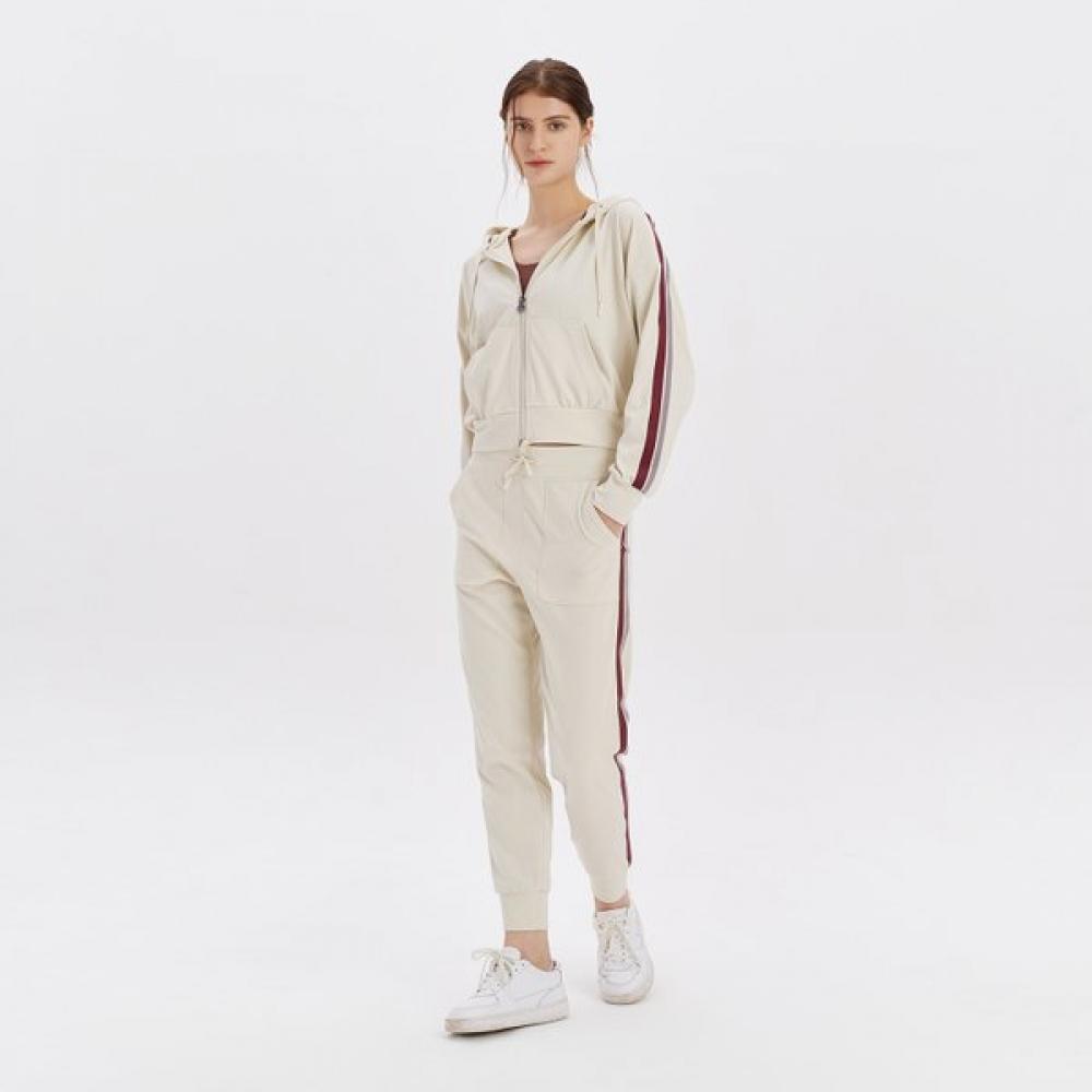 The Ticha Fusing Jogger Pants HTWJG3K05T is a women's casual banding pants from the Wit brand, emphasizing comfortable wear. Made of 93% polyester and 7% polyurethane, it offers stretch and comfort. With a suitable length and thick fabric, it can be worn from fall to winter. It fits well and is suitable as a daily wear item.