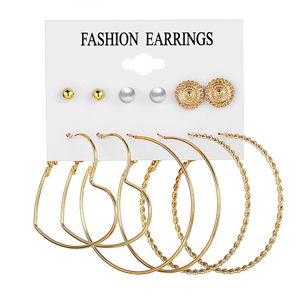 6 Pairs of Women's Earrings Pearl Love-heart Shape Circle Earrings