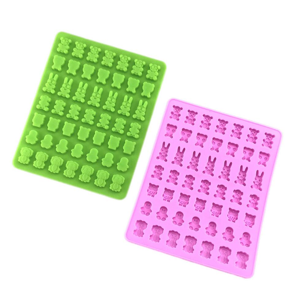 2Pcs/Set 49 Holes Silicone Mold + Dropper Set Cartoon Chocolate Gummy Candy Mold Ice Cube Maker