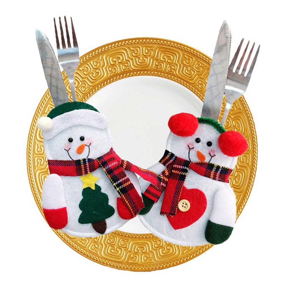 Snowman Knife & Fork Cloth Storage Bag Christmas Household Decoration Furniture(Not Include Knife/ Fork/ Dish)