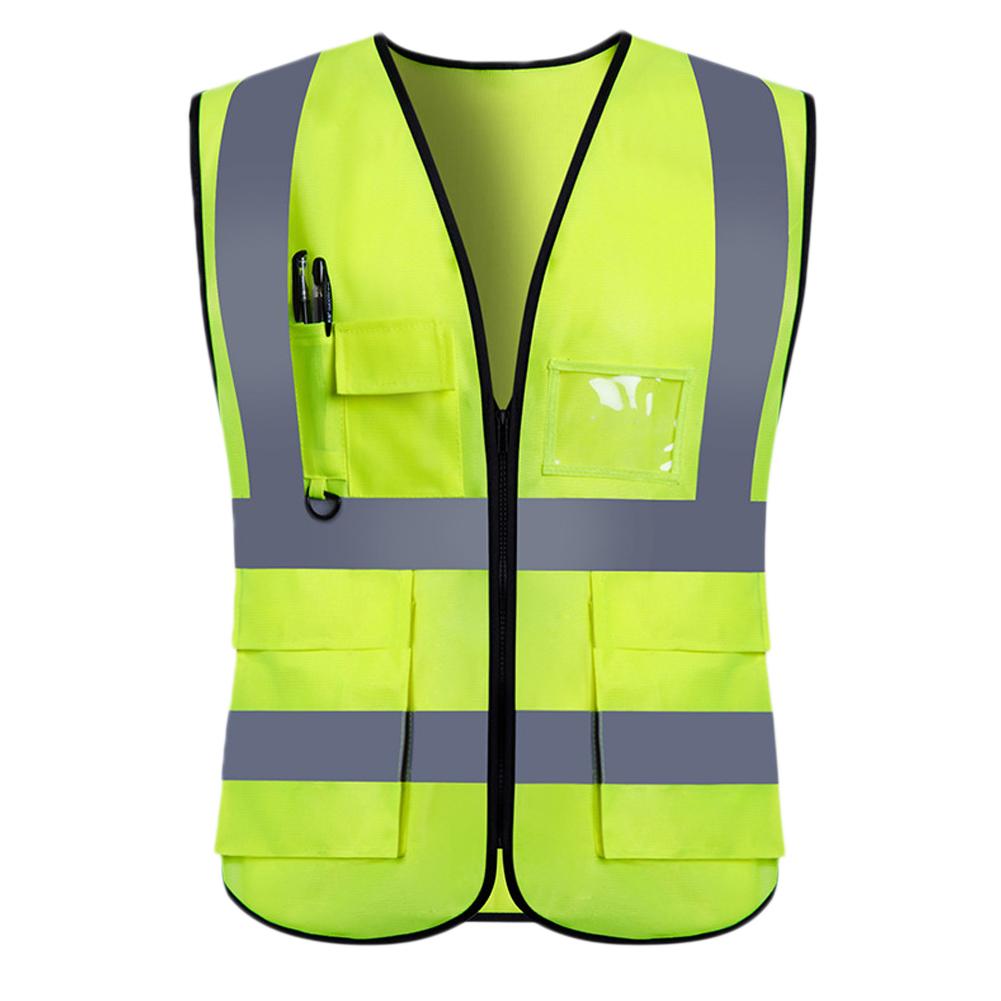 Adults High Visibility 5 Pockets Safety Reflective Zipper Vest Warning Waistcoat