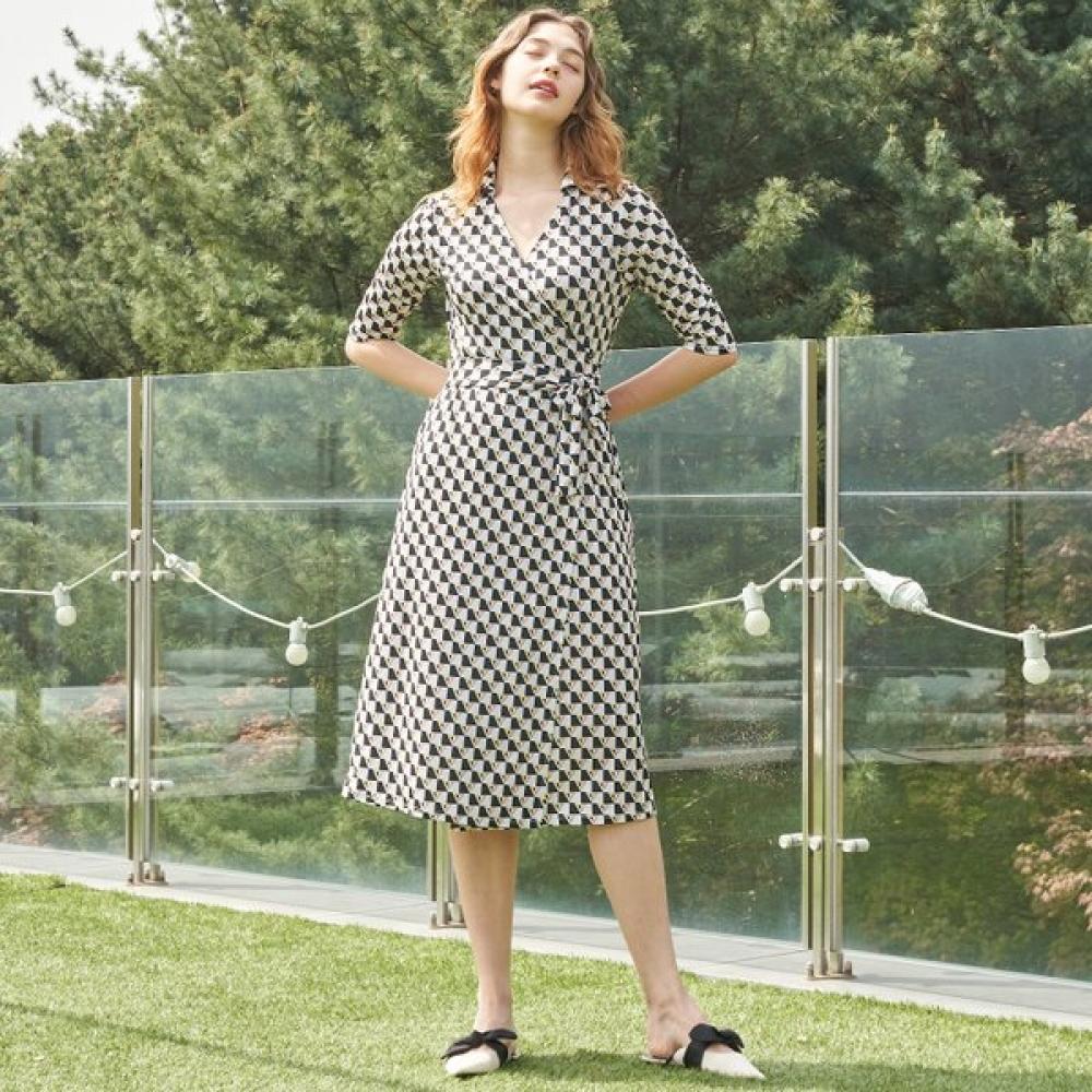 Lipbbam Creora DeRosy Collar 3/4 Sleeve Long Wrap Dress LDM11DF01 features a signature flare style, elegant and wearable for all seasons. The sleeves are 3/4 length, providing a comfortable fit.
