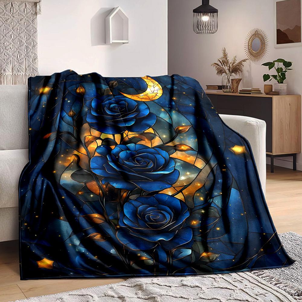 1pc Stained Glass Roses Print Blanket Lightweight Flannel Throw Blanket For Sofa, Bed, Living Room, Office, Outdoor Travel, Camping