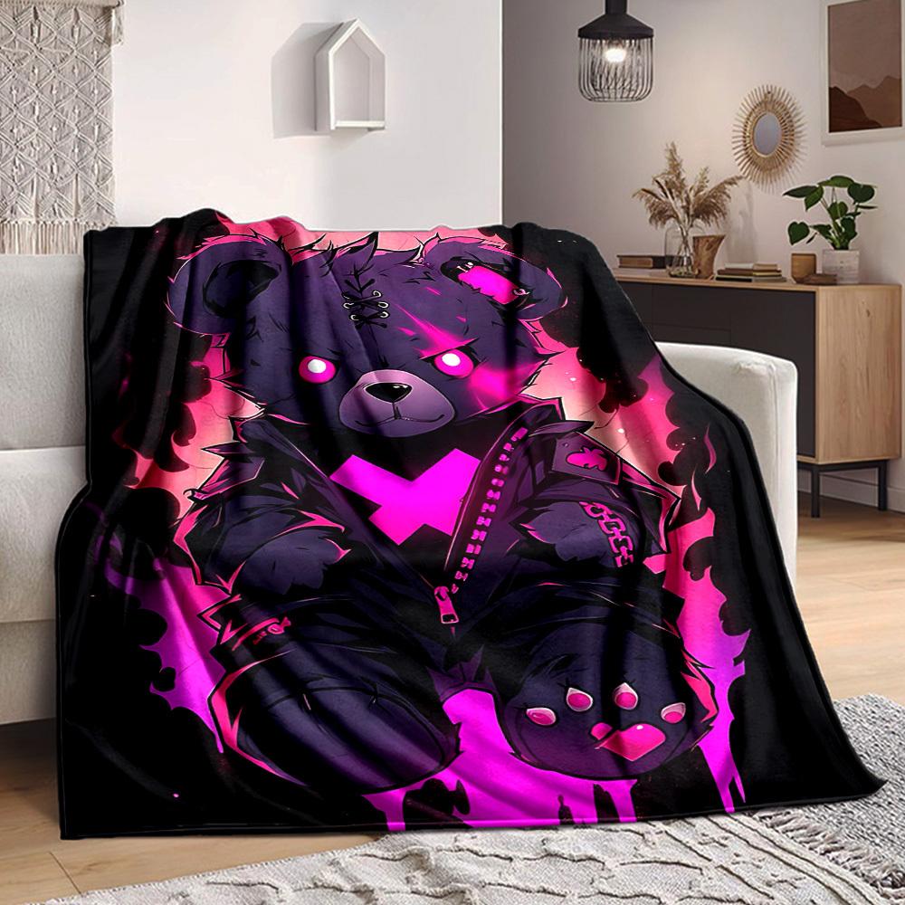 1pc Bear Print Blanket Lightweight Flannel Throw Blanket For Sofa, Bed, Living Room, Office, Outdoor Travel, Camping