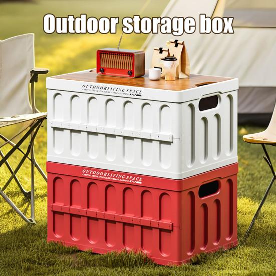 Tato všestranná kempingová úložná krabice má pevnou horní víko s texturou dřeva a vysokou nosností, které slouží také jako dočasný stolek na kávu, jídelní talíře nebo kempingové vybavení.. Navrženo pro multifunkční použití, slouží jak jako úložný box, tak jako venkovní konferenční stolek.. Když se nepoužívá, složí se naplocho, aby šetřil místo, což je ideální pro kufry, balkony nebo kouty bez nepořádku..