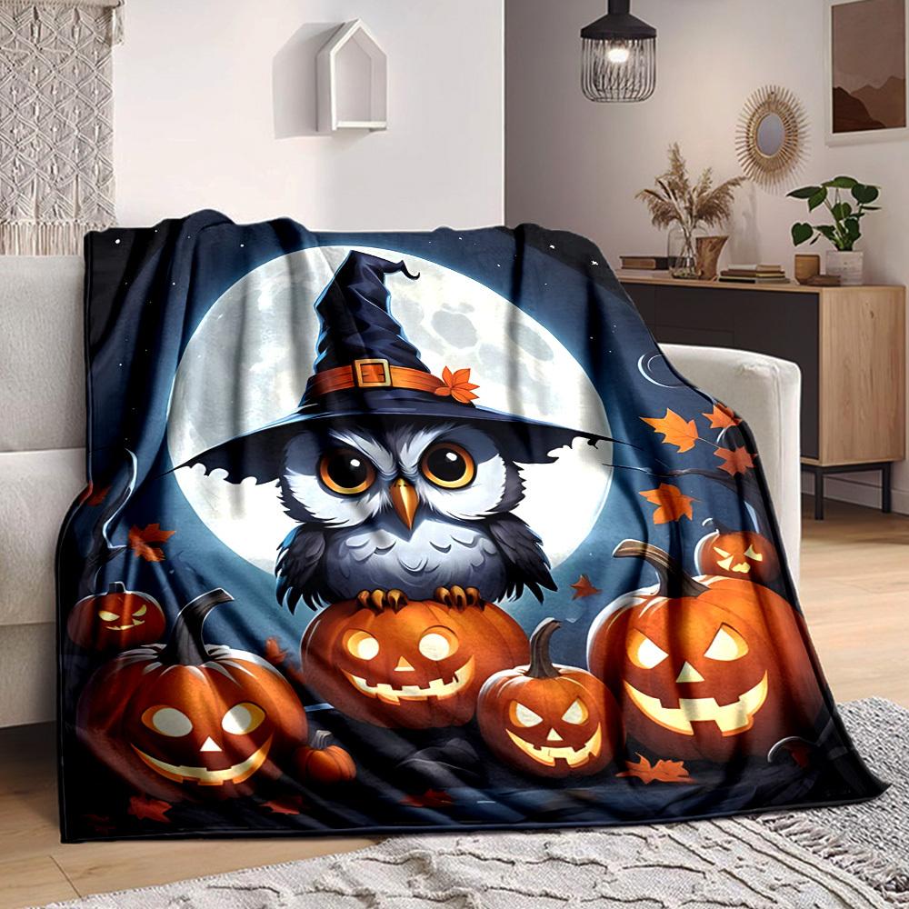 1pc Halloween Owl Blanket, Lightweight Flannel Throw Blanket for Sofa, Bed, Travel, Camping, Living Room, Office, Couch, Chair, and Bed