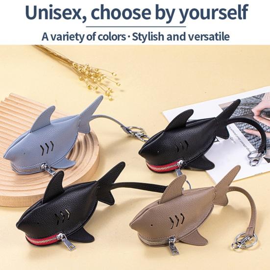 This shark-shaped key bag combines cute design with practical functionality. Crafted from high-quality leather, it securely holds keys while offering easy access and durability. With compact yet ample capacity, it accommodates earphones, loose change, lipstick, and other small essentials, keeping your belongings organized on the go.