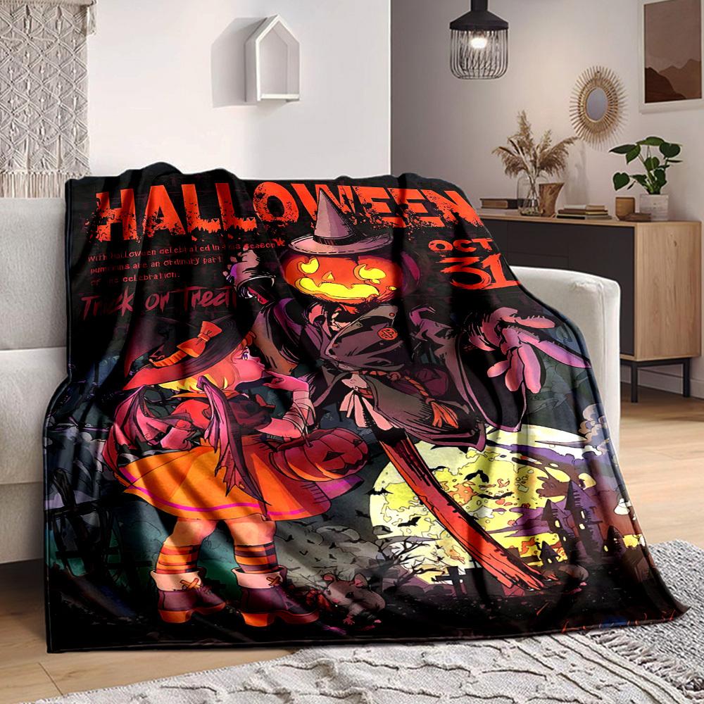1pc Halloween Pumpkin Blanket, Lightweight Flannel Throw Blanket For Sofa, Bed, Travel, Camping, Living Room, Office, Couch, Chair, And Bed