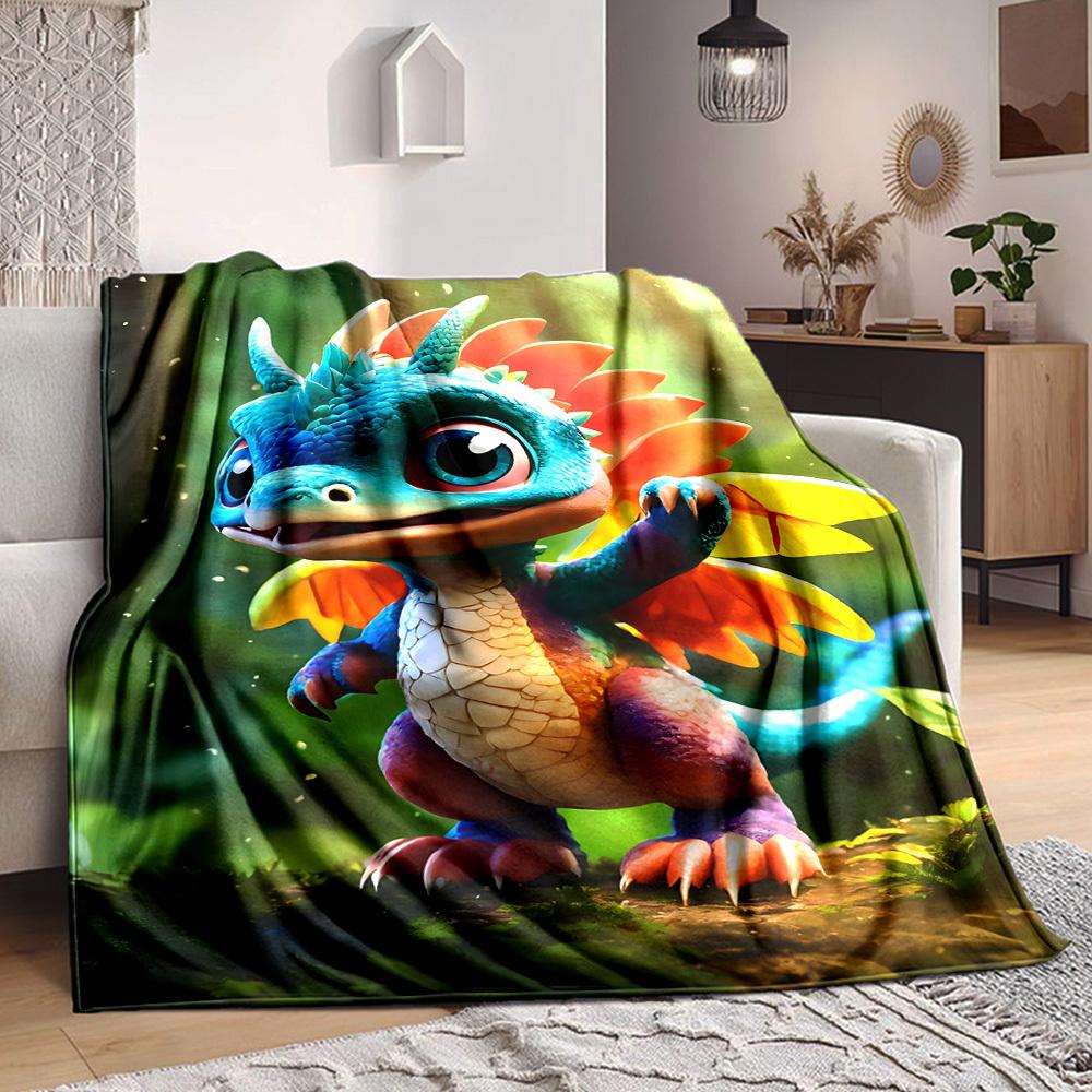 1ks Fantasy deka s drakem, Lehká flanelová přehozová deka na pohovku, postel, cestování, kempování, obývací pokoj, kancelář, gauč, křeslo a postel