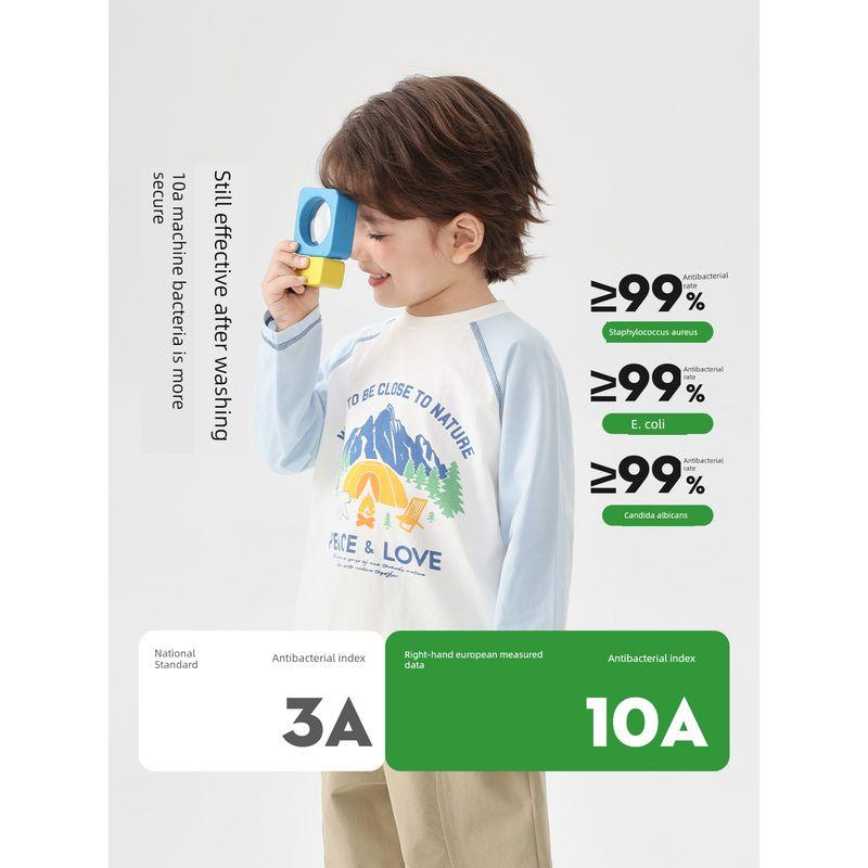 European Style Boys' Long-Sleeved T-Shirt Children's Spring and Autumn Antibacterial Base Shirt 2026 New Children's Clothing Baby Pure Cotton Top