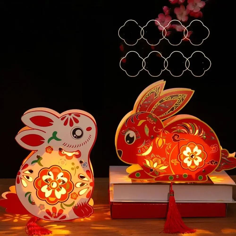 Mid-Autumn Festival Lantern Gift Luminous Children Cartoon Diy Lantern Stall Ancient Style Rabbit Jade Rabbit Lantern Christmas