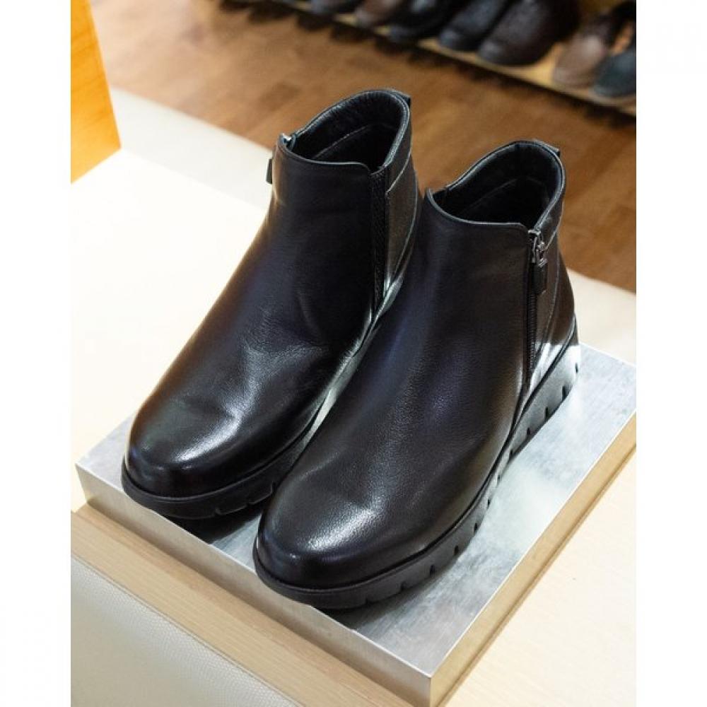 The Bainere Women's Comfort Boots Black 381c model is made of soft cowhide and designed as a comfort ankle boot. It has a wide foot design for a comfortable fit, with cushion insoles tailored for arch support, providing comfort to your feet. Additionally, the polyurethane sole offers excellent non-slip functionality and is effective in shock absorption. The modern design makes it a comfortable option for everyday wear.