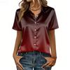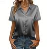 Dámská saténová halenka s krátkým rukávem, hedvábné topy, košile na knoflíky, oblečení pro business casual