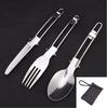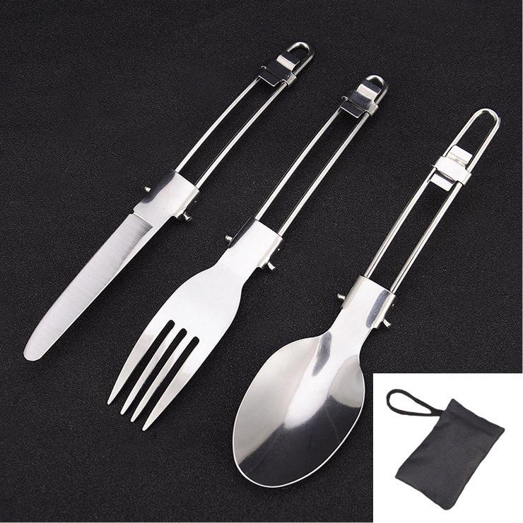 Portable Stainless Steel Folding Cutlery Set - 3-Piece Travel & Camping Utensils