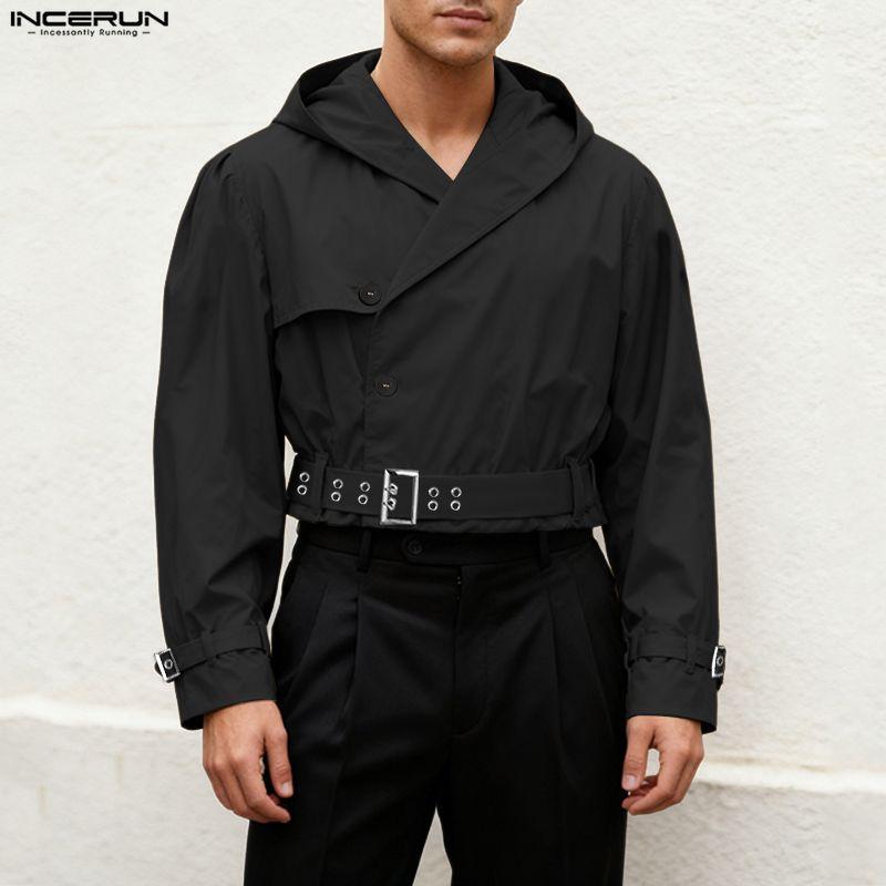 INCERUN Men Long Sleeve Casual Loose Short Hooded Cargo Jackets Tops