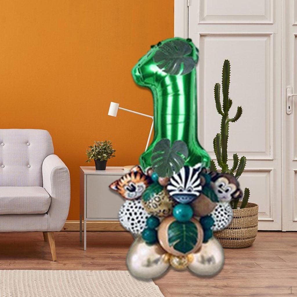 - Includes: 3-inch number balloon + -inch latex balloons + 5-inch latex balloons + 6 leaves + 3 animal balloons + glue