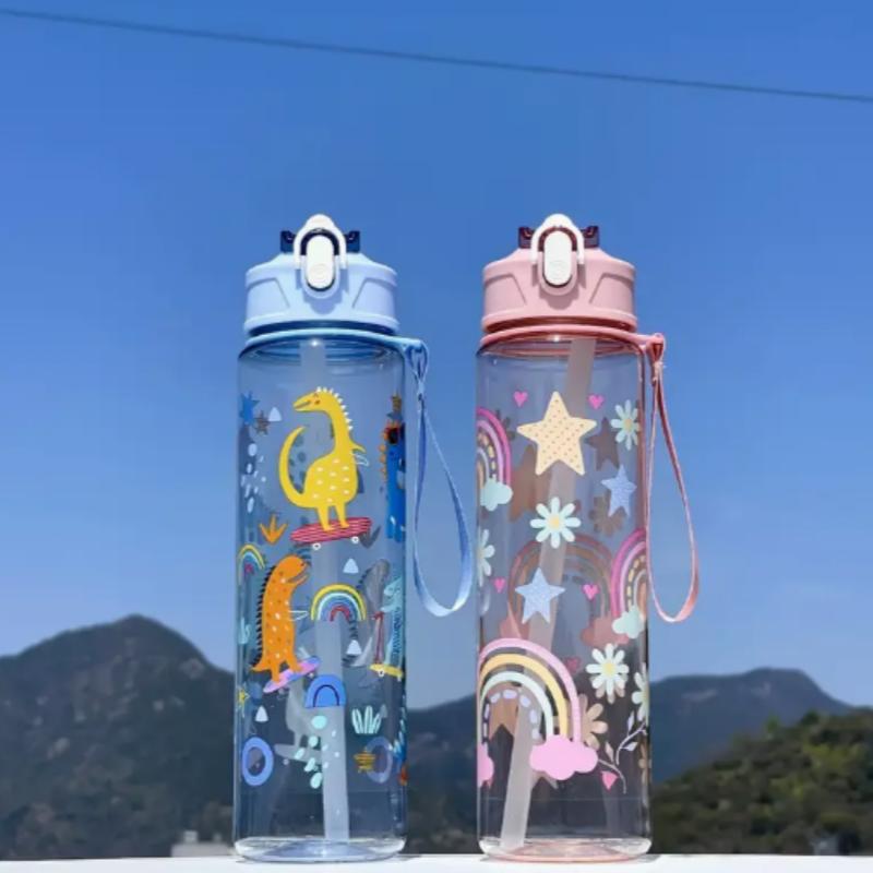780ML Kids Water Sippy Cup Creative Cartoon Cup with Straws Leakproof Water Bottle Outdoor Portable Children's Plastic Water Cup