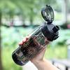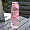 Portable Convenience Large Capacity Cherry Blossom Water Bottle with Secure Lid & Carrying Rope, High-Quality PC Material
