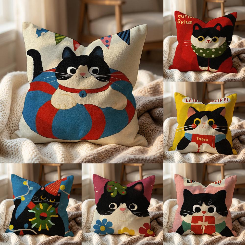 Cartoon Cat Cute Cushion Cover Multi-Scene Pillow Cover for Home & Car - Reversible, Soft & Durable for Daily Use