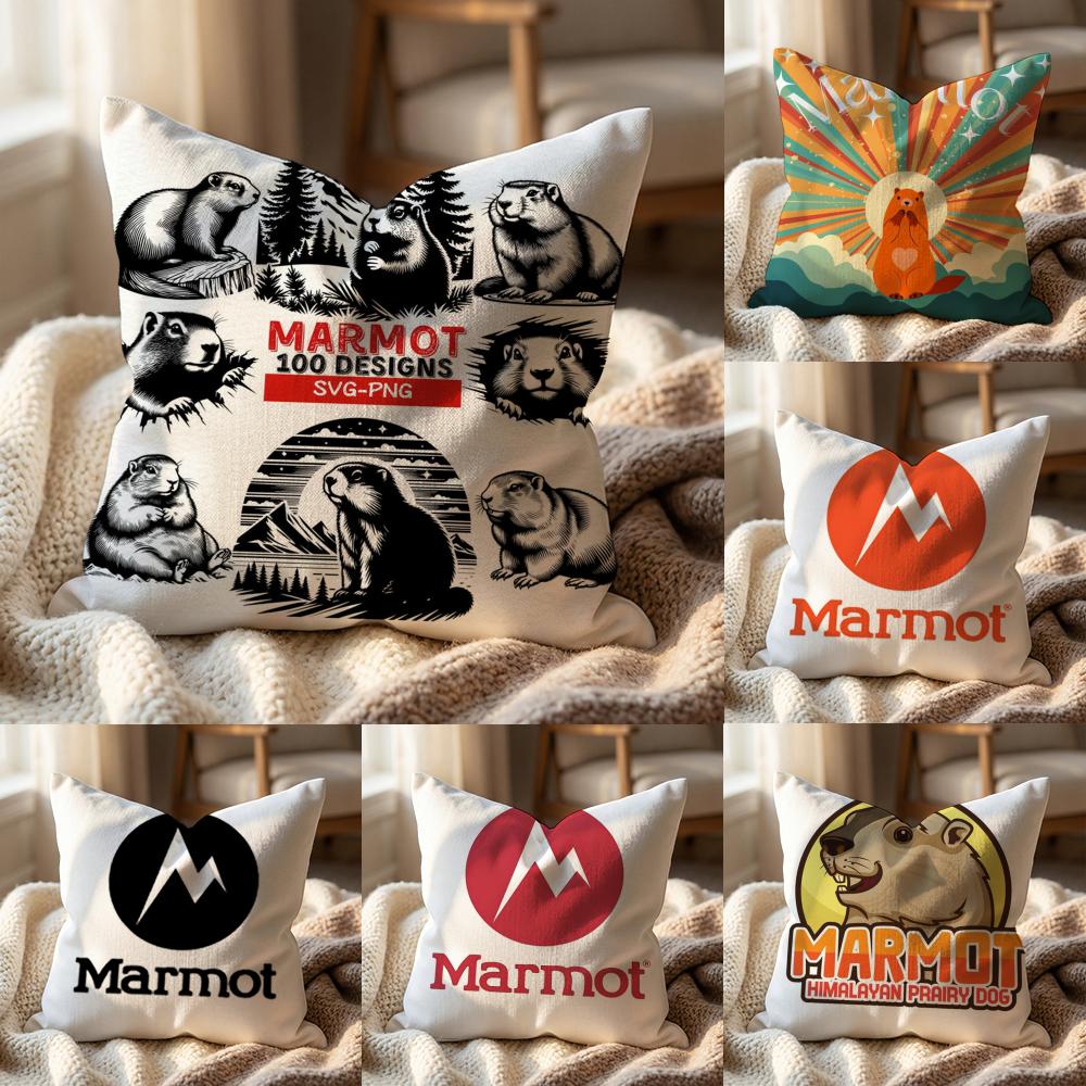 Cute Design M-Marmot Cushion Cover Multi-Scene Pillow Cover for Home & Car - Reversible, Soft & Durable for Daily Use