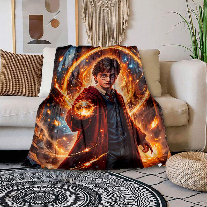 1pc Magical Wizardry: A Fiery Enchantment Cartoon Blanket,Portable Throw for Travel & Camping, All Season Cozy Blanket,Ideal Gift