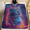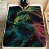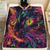 Neon Cats Print Flannel Blanket, High quality Comfortable for All Seasons, Home Decor, Warmth and Comfort