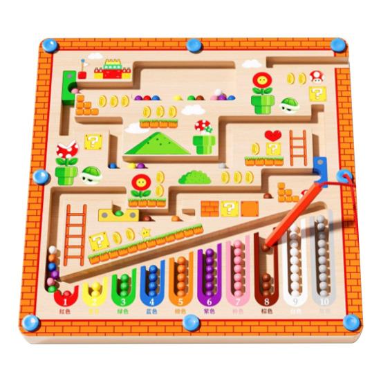 Featuring a classic game-inspired theme with castles, pipes, mushrooms, and ladders, it sparks imagination and curiosity. The included green magnetic pen allows children to move balls along the maze without direct contact, enhancing concentration and fine motor skills through interactive play.