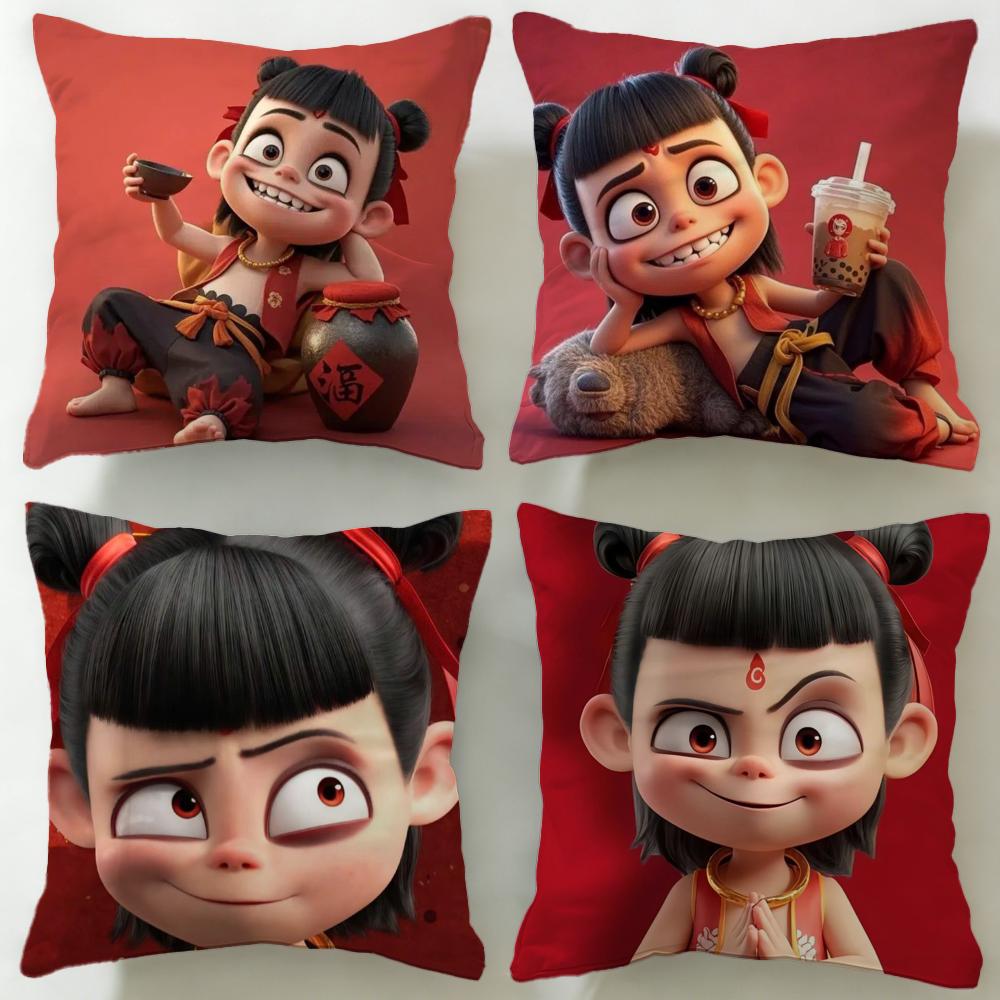 classic animated character Nezha Cushion Cover Soft & Easy-Wash Pillow Case – Versatile for Couch, Bed, Travel and Office
