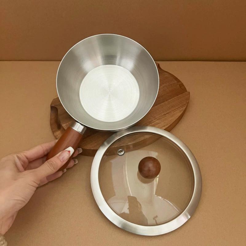 Stainless Steel Milk Pot With Wooden Handle, Compact Cooking Pot, Suitable For Frying Eggs And Heating Milk. Made Of Stainless S