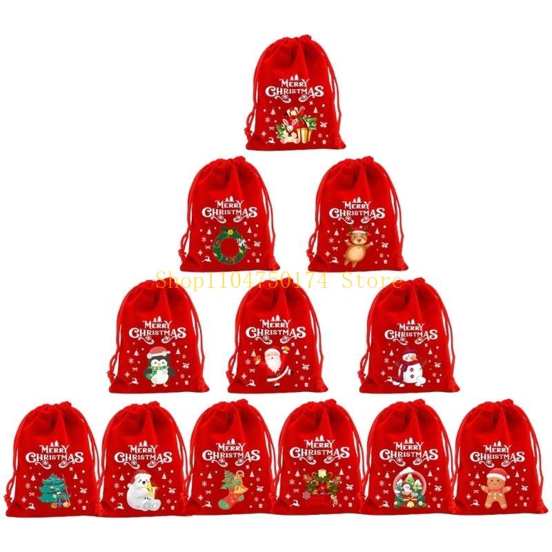 12pcs Christmas Plush Gift Bags For Holiday Decorations And Surprises Drawstring Designs Pouches For Secure Closure top sale