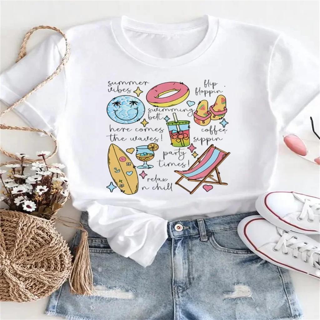 Cute Pattern Beach Travel Printed Women's Casual Sweet Regular Summer Short Sleeved Top Fashion Style Printed New T-Shirt