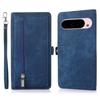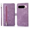 For Google Pixel 10 Pro XL/9 Pro XL Case Zipper Pocket 9 Card Slots PU Leather Phone Cover with Wrist Strap