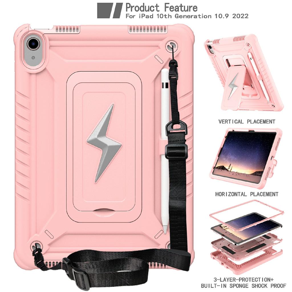 Pro iPad (2025)/10,9 (2022) Pouzdro s opěrkou PC + Silikonový kryt na tablet s ramenním popruhem