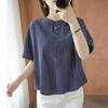 Cotton Short-sleeved T-shirt Women's Vertical Stripes Imitation Cotton and Linen Summer Loose and Thin Half-sleeved Shirt Trend