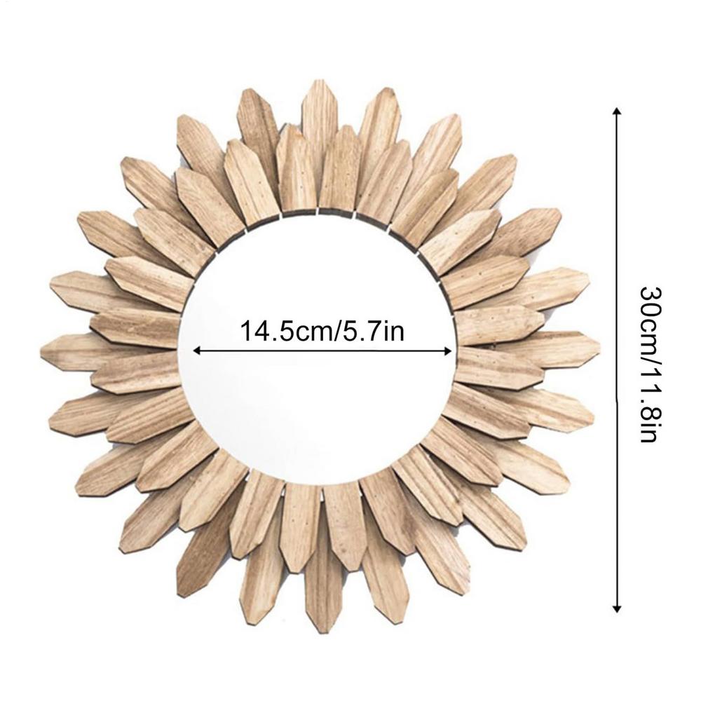 Wooden Mirror for Wall Round Wall Decor Decorative Sunflower Hangable Wooden Mirror for Dining Bathroom Living Room Hallway