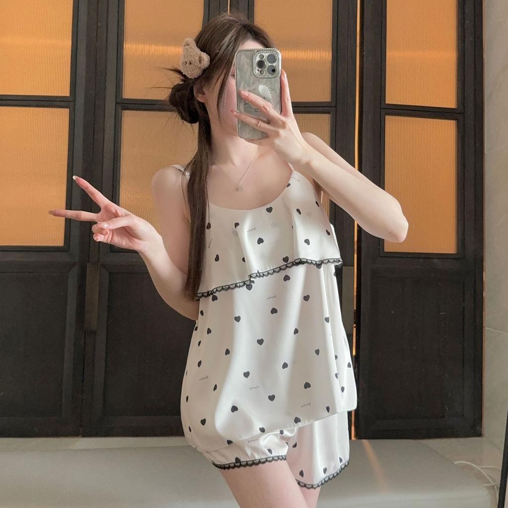 New sexy pajamas women's ice silk summer girl pure desire printing suspender nightdress loungewear can be worn outside
