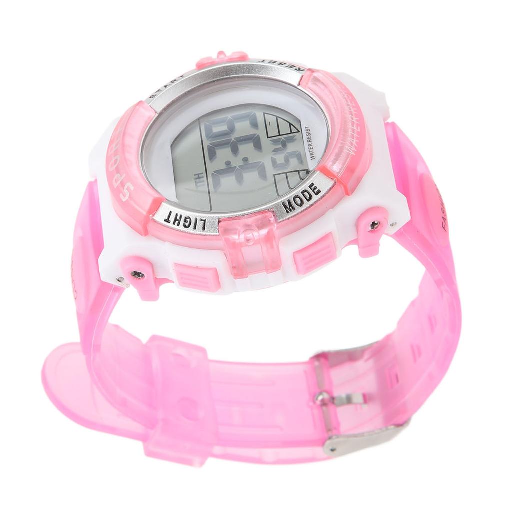 Digital Chronograph Watch Girls Student Electric Waterproof PU Strap for Swimming Sports with Colorful Night Light Alarm
