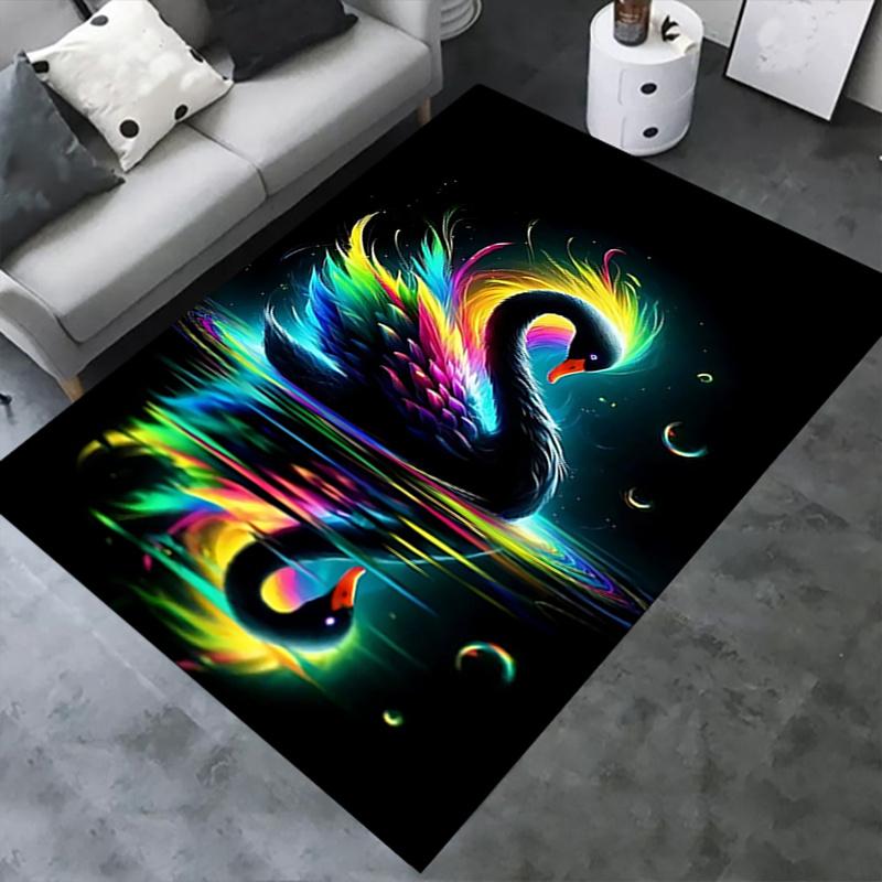 Colorful Swan Chair Mat Office Carpet, Oversized Rug for Home Decor, Sofa Mat, Desk Pad Gift, Suitable for Bedroom, Living Room, Various Rooms