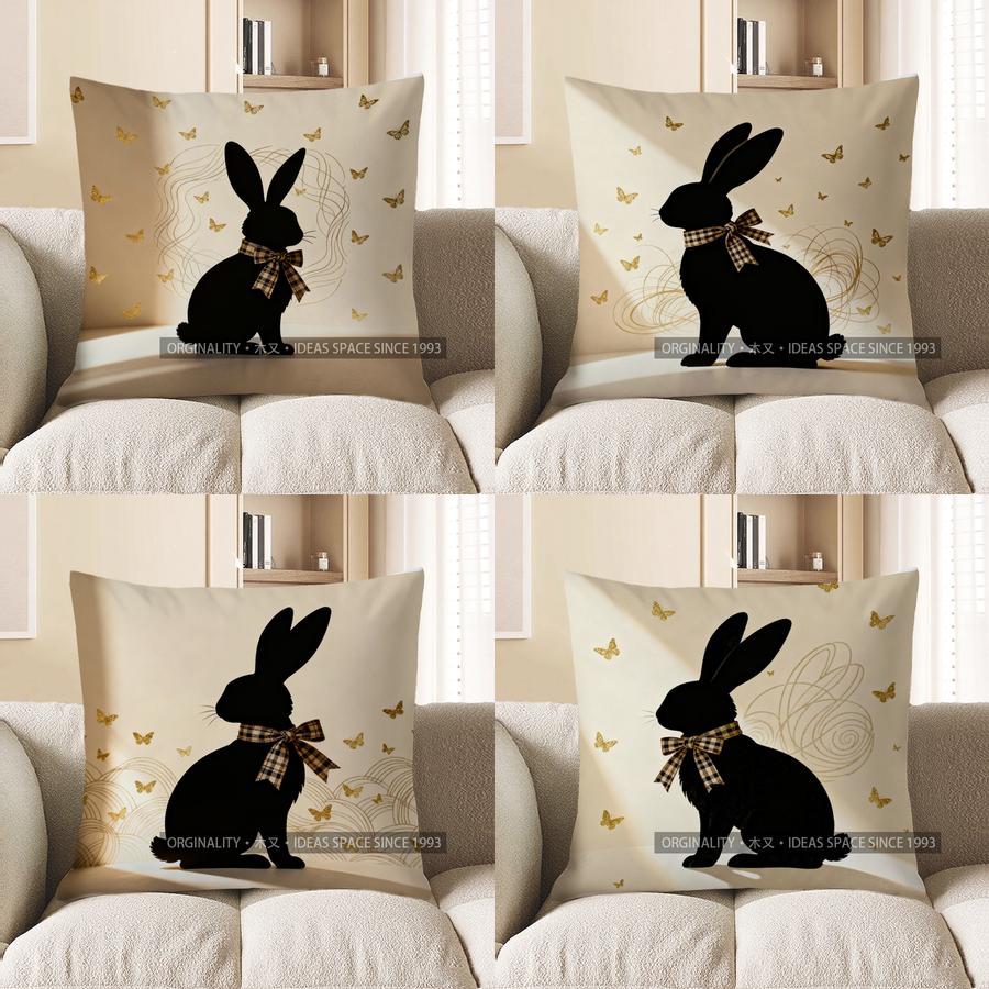 2D Black Rabbit With Butterflies Decorative Pillow Pattern Cushion Cover Suitable For Sofa Bedroom Car Pillow Cover