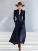 Elegant Empire Waist Dress V-Neck Bubble Sleeve Long Sleeve Maxi Dress for Women