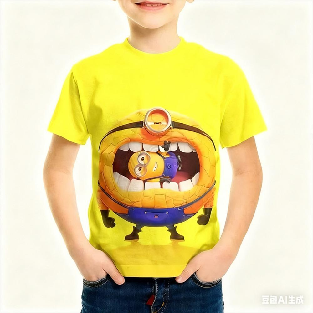 2026 Nová série Mimoňů Dres Kreslený vzor Venkovní sportovní oblečení Ležérní Kulatý výstřih Krátký rukáv Dětská trička
