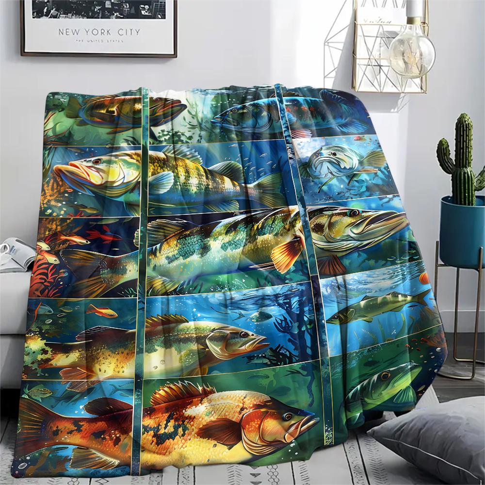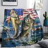 1Pc American Bass Fishing Print Flannel Blanket, High quality Comfortable for All Seasons, Home Decor, Warmth and Comfort, Perfect for Christmas Gifts